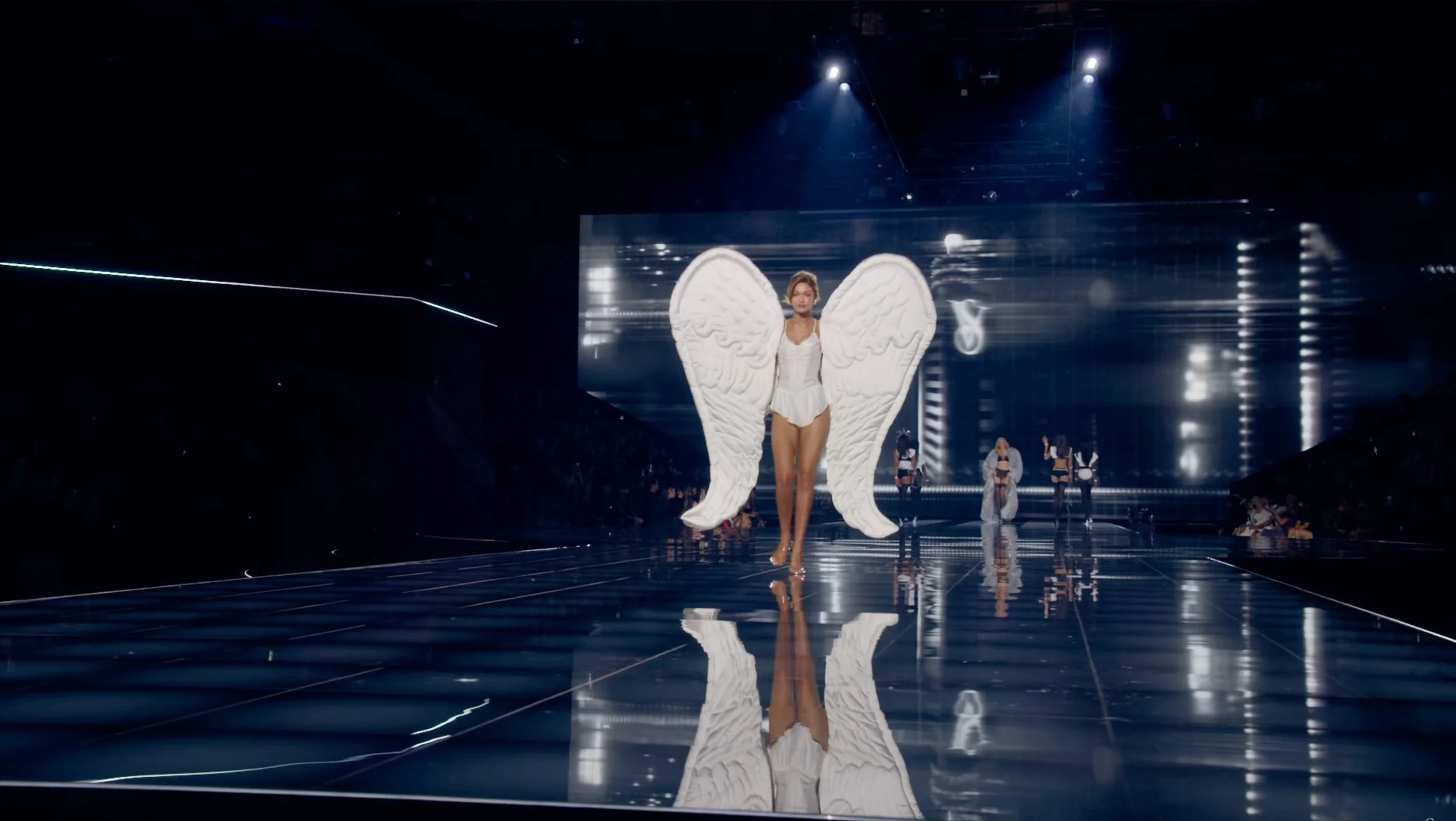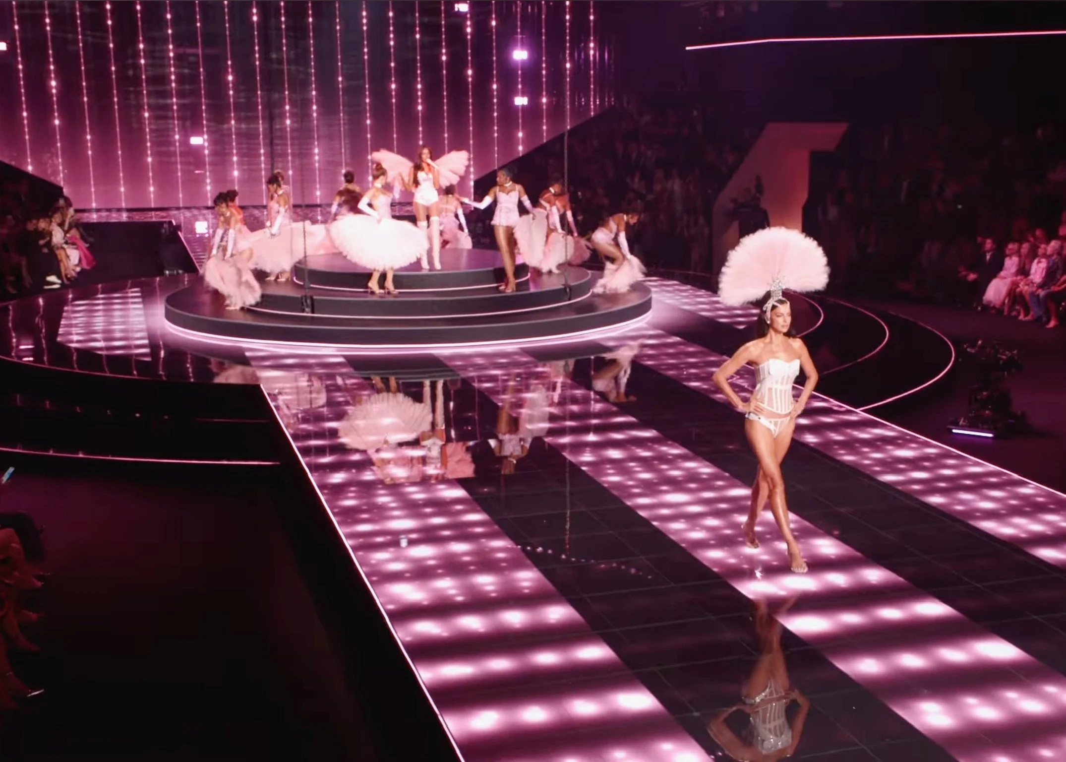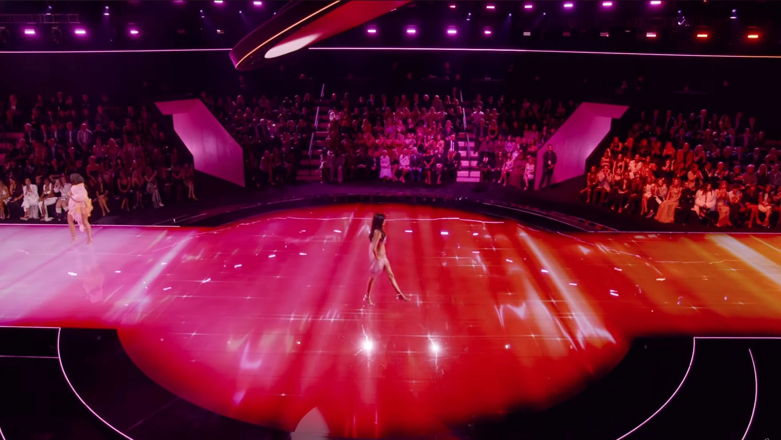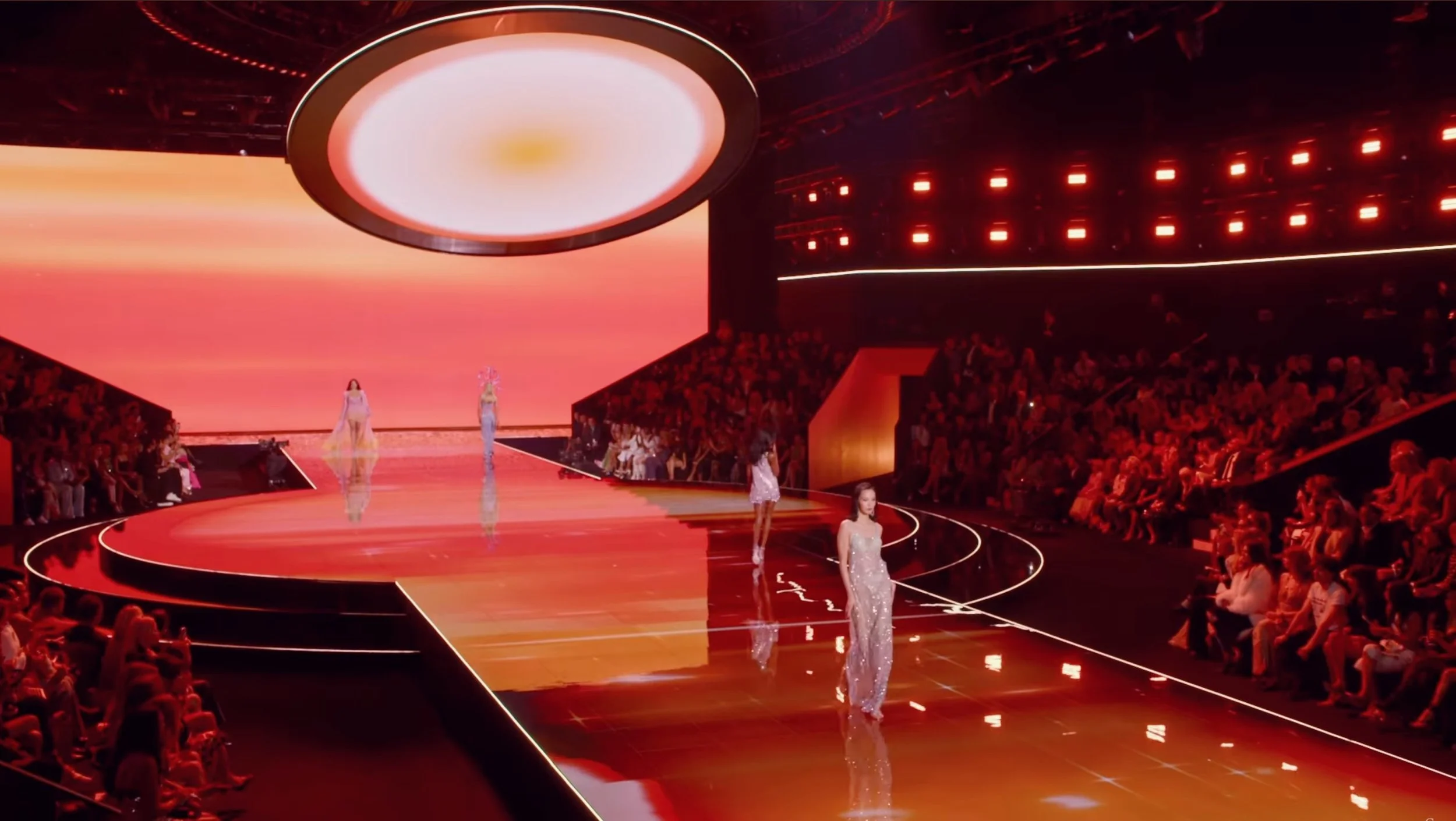 Every detail of the set, from LED installations to mirrored surfaces, was designed to amplify rhythm, light and scale. The result was a show that felt alive from every angle, translating Victoria’s Secret’s iconic legacy into a defining moment.